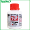 ダコニール1000は、各種作物に登録があり、灰色かび病、黒星病、うどんこ病、褐斑病、べと病、炭疽病、つる枯病、斑点病、すすかび病に登録があります。汎用性が高く、60種類を超える作物に登録がある。 様々な病害に登録があり、基幹防除薬剤として適する。作物の各種病害に適用があるため、効率的な病害防除が可能となる。有効成分が1種類であるため、栽培期間中に使用する成分数を減らすことができる。作物への汚れが少ない。 一般に水和剤は薬液散布後に作物に汚れが残るが、本剤はこの汚れの原因であるクレイ等の鉱物質を含んでいないので、散布後の汚れが少ない。耐性菌の確認事例がない。 有効成分のTPNは、広範囲の作物・病害に使用されているが、耐性菌の出現事例はない。有効成分が微粒子なので優れた効力を発揮する。フロアブル製剤により、有効成分が微粒子になっているため、植物を被覆する面積も大きく、また均一に付着する。