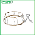 竹笠五徳 【商品特長】 ●竹笠・ヒノキ笠・スゲ笠などに取り付けて使用してください。 ●あご紐付き 【素材】 ●竹、プラスチック、とう(籐) 【サイズ】 ●上部の直径・・・約20cm ●下部の直径・・・約16cm ●高さ・・・・・・約6.5cm 【生産国】 ●ベトナム ※竹笠・ヒノキ笠・スゲ笠は別売りとなります。