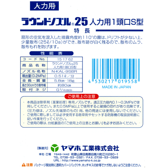 ヤマホ ラウンドノズル25人力用1頭口S型 除草用 ネジ径G1/4